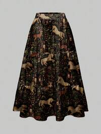 Fairycore Jupe mini évasée style gothique sombre avec imprimé de chauve-souris, crâne, lune et citrouille pour femmes