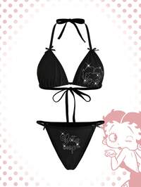 Betty Boop | ROMWE Ensemble de lingerie comprenant un soutien-gorge triangle et un string avec motif de lettre de dessin animé et strass