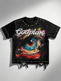 T-shirt délavé pour hommes avec style de rue, déchiré et orné de diamants