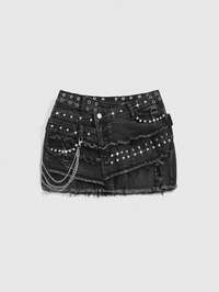 ROMWE Avant Jupe mini en jean moulante avec taille asymétrique décorée de perles et de clous, style vintage subculture Y2K pour femmes