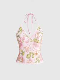 ROMWE Avant Débardeur floral imprimé sexy, rafraîchissant et estival pour les vacances des femmes