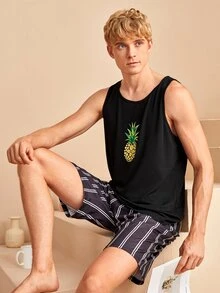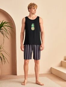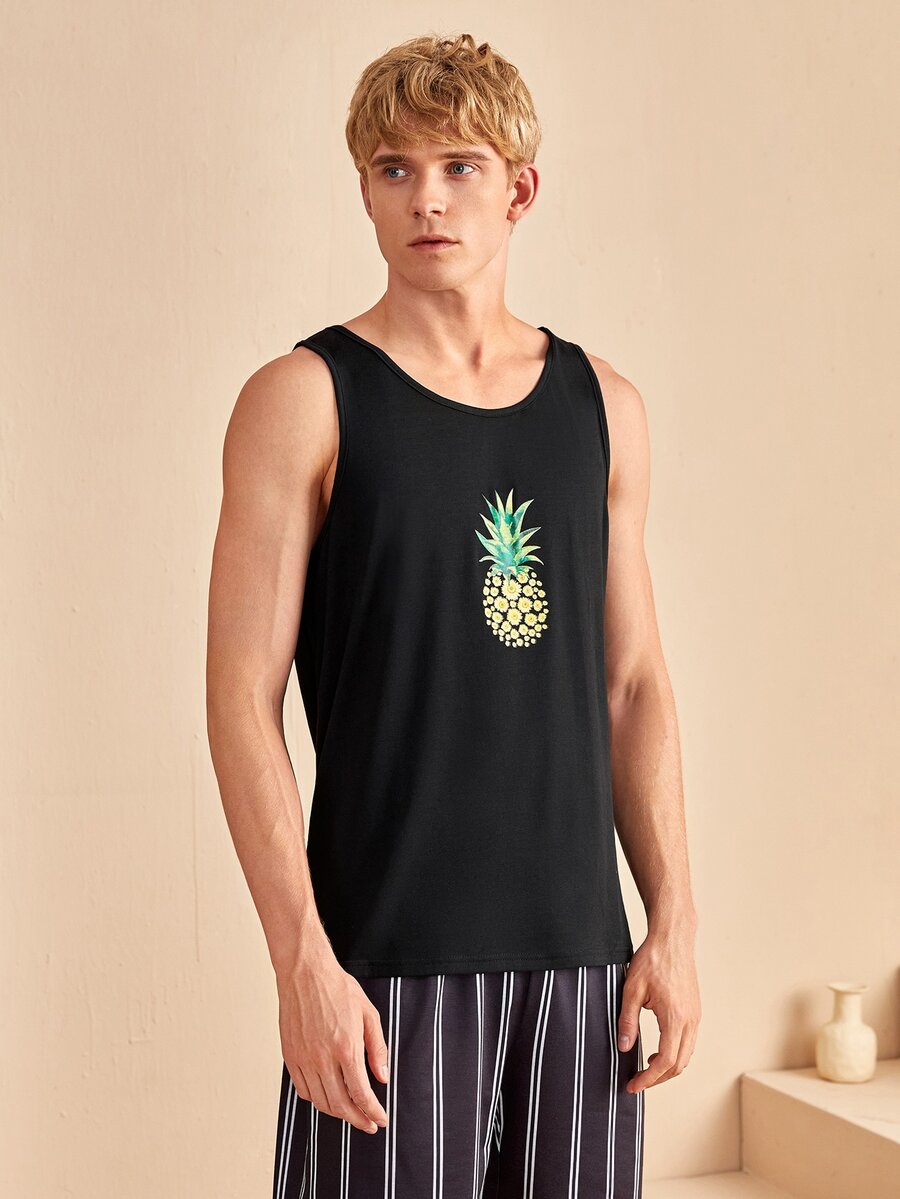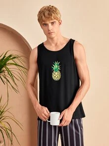 Homme Débardeur de pyjama à imprimé ananas et fleur