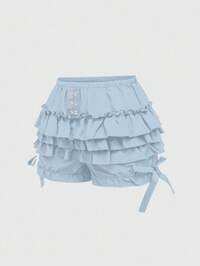 Goth Short en style Dark Academia pour femmes avec un ourlet à 3 volants mignons et une décoration en nœud