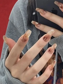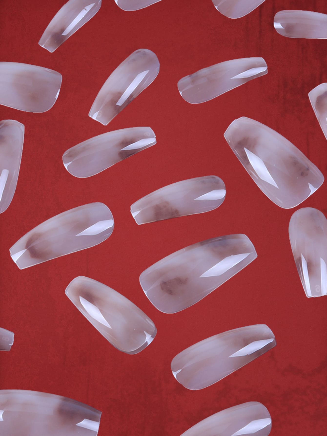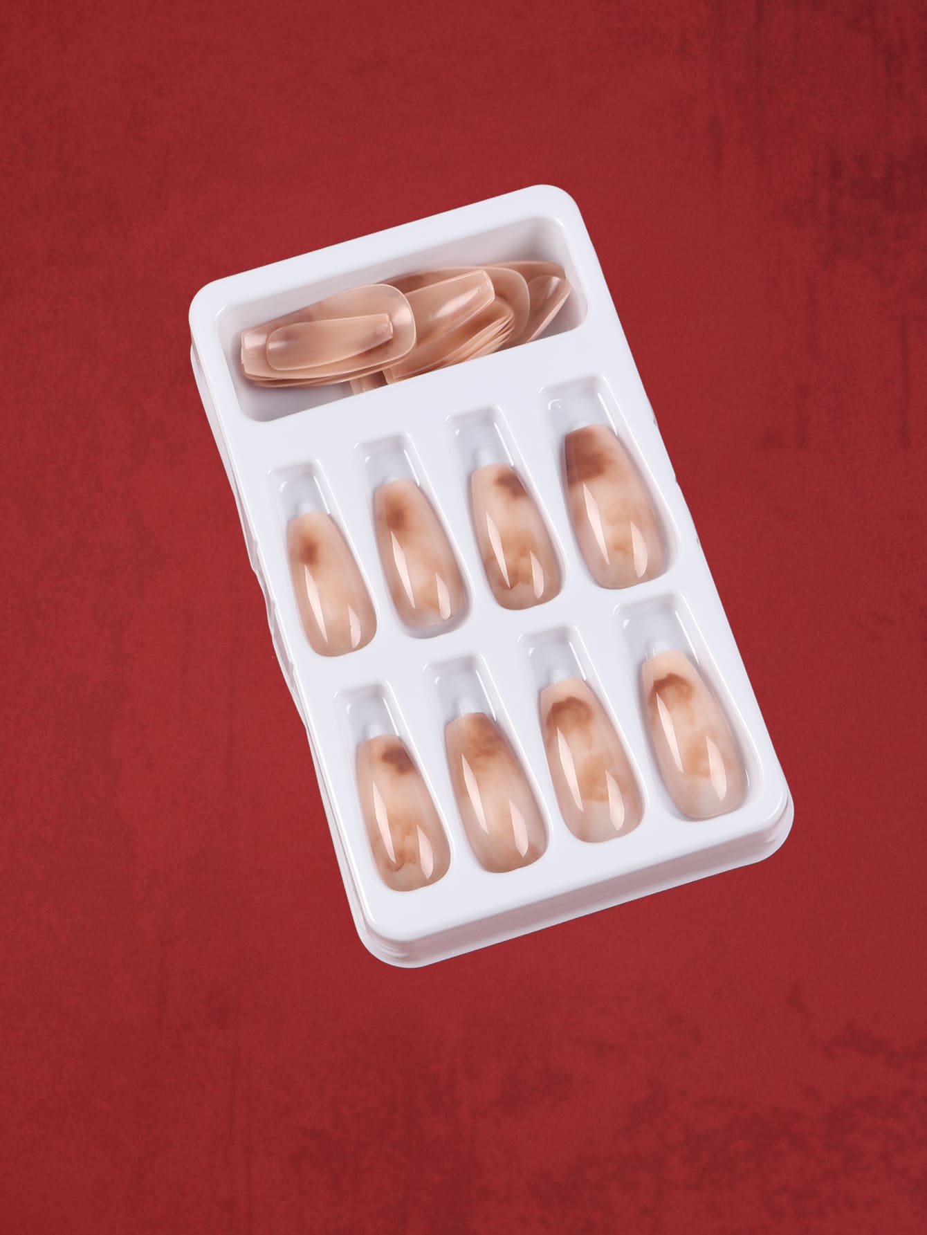 24 pièces Faux ongles cercueil marbré & 1 feuille Ruban