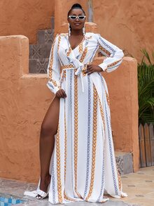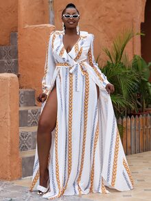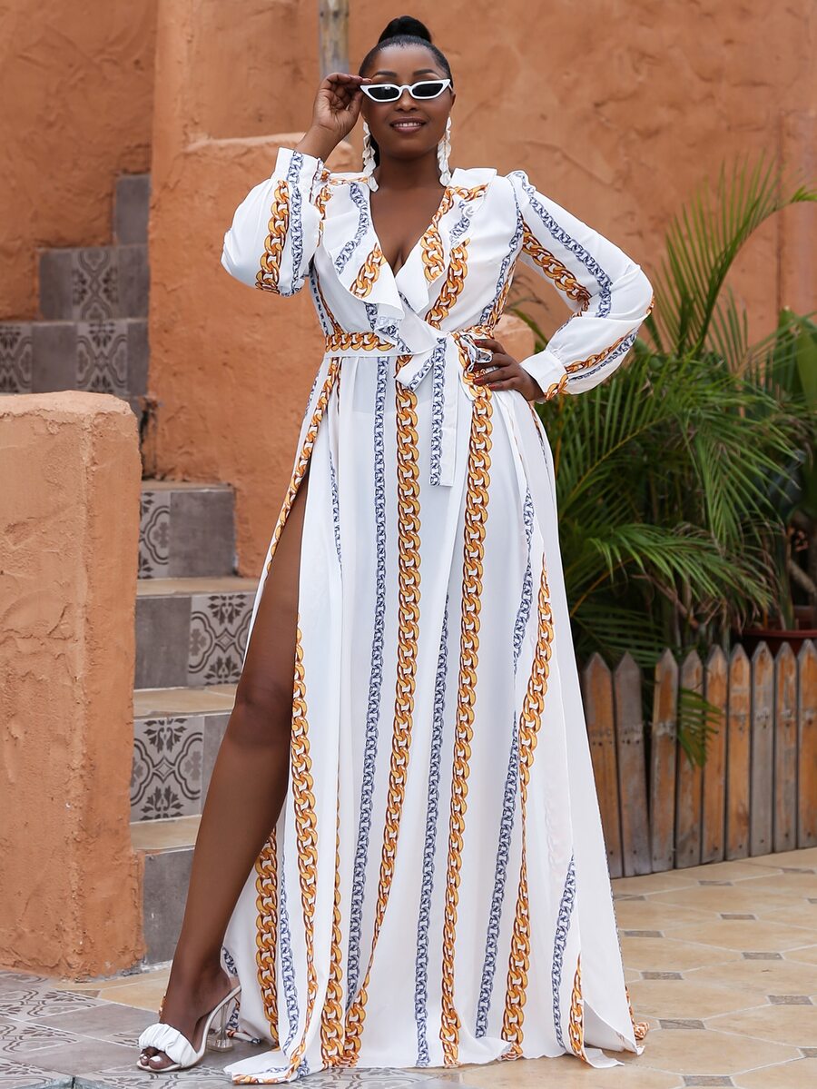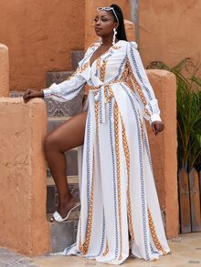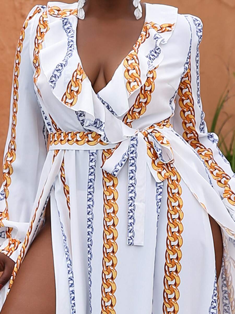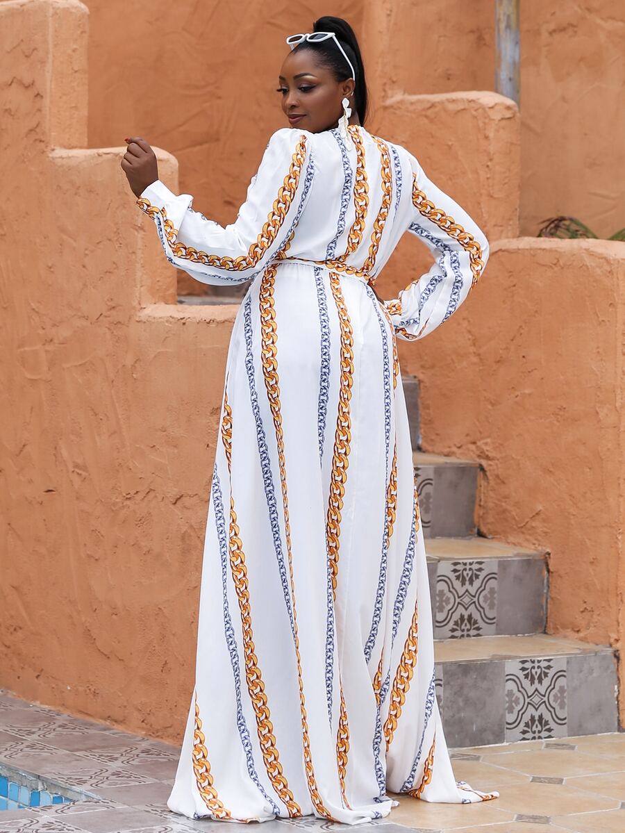 seomiscky Robe ceinturée à imprimé chaîne avec plis