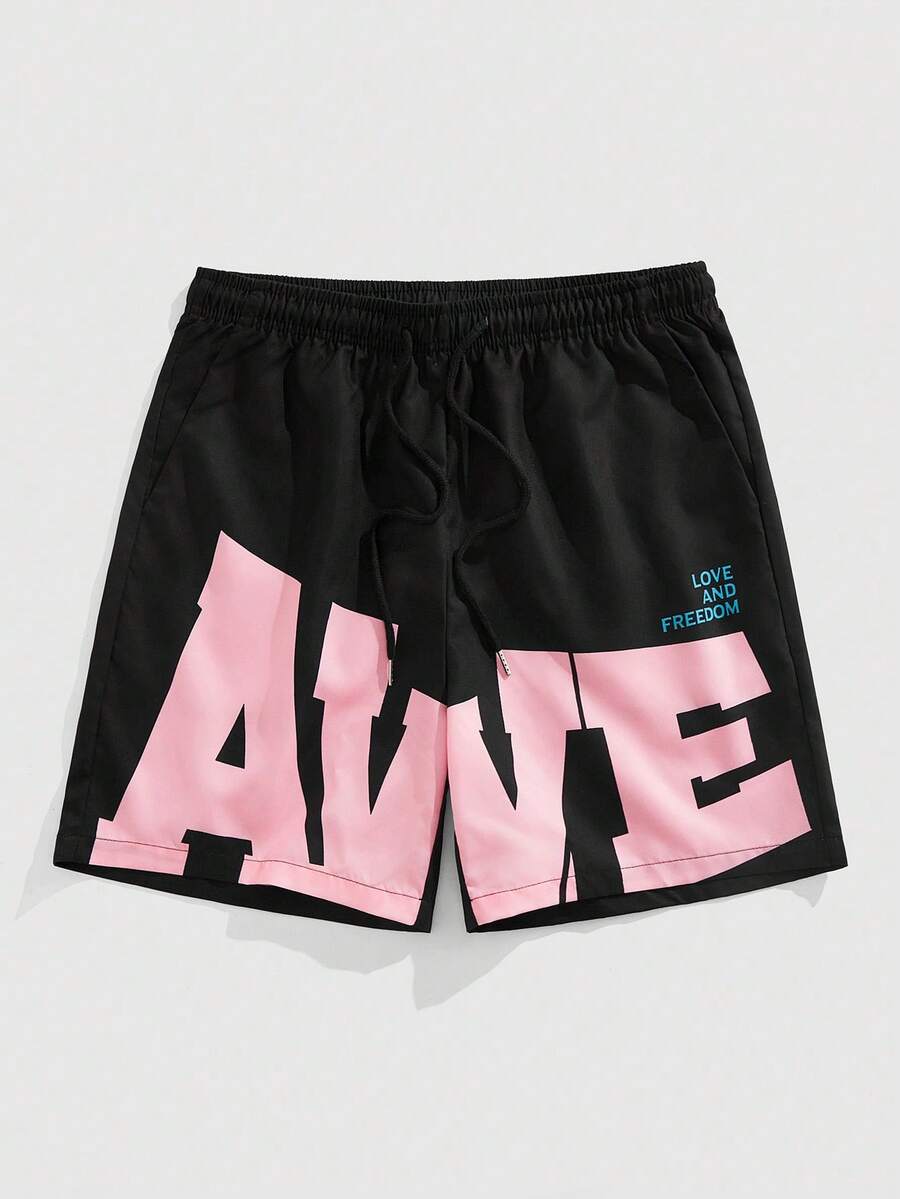 Street Life Short homme décontracté à imprimé lettres, taille élastiquée avec cordon de serrage, style urbain à la mode pour les trajets quotidiens, été