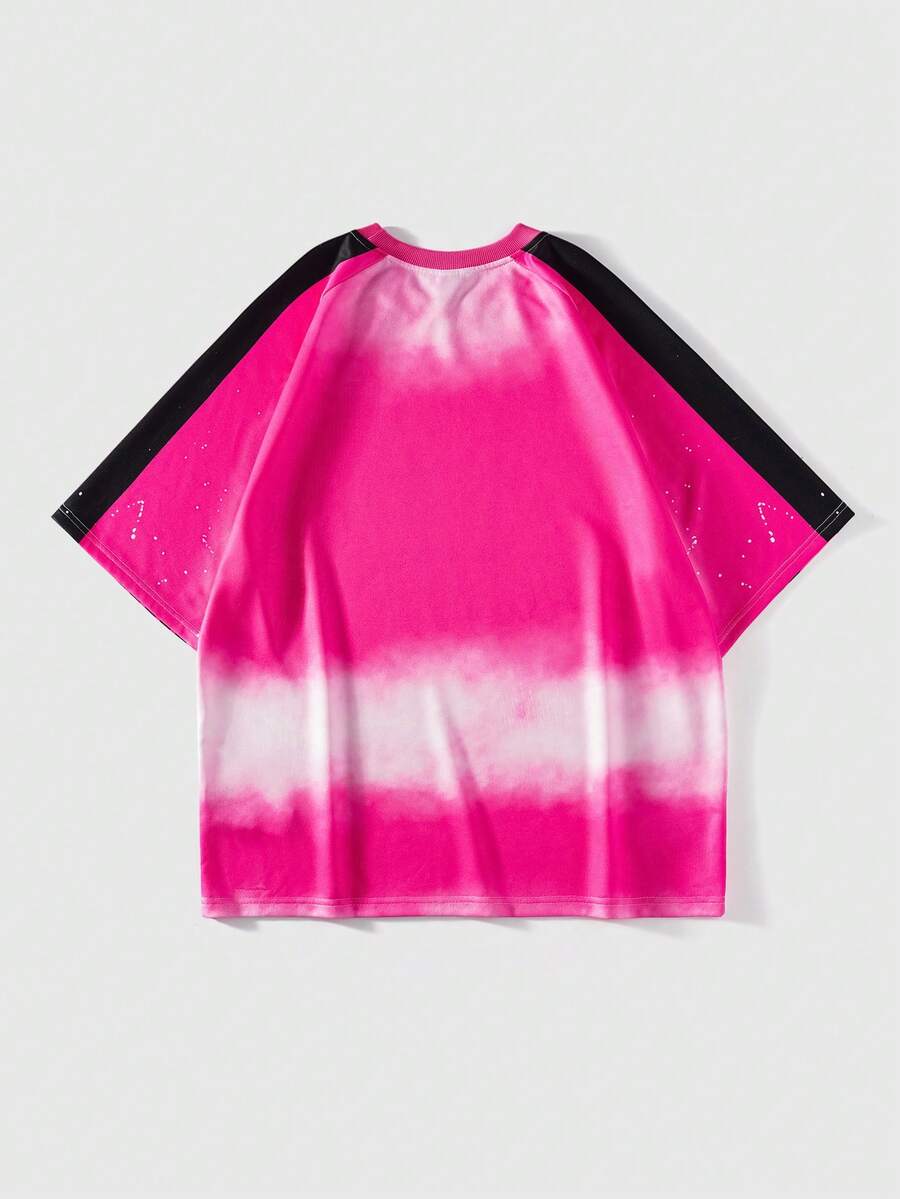Street Life T-shirt à manches courtes pour hommes, style décontracté et sportif, avec imprimé chiffre dégradé et rayures contrastées sur les côtés